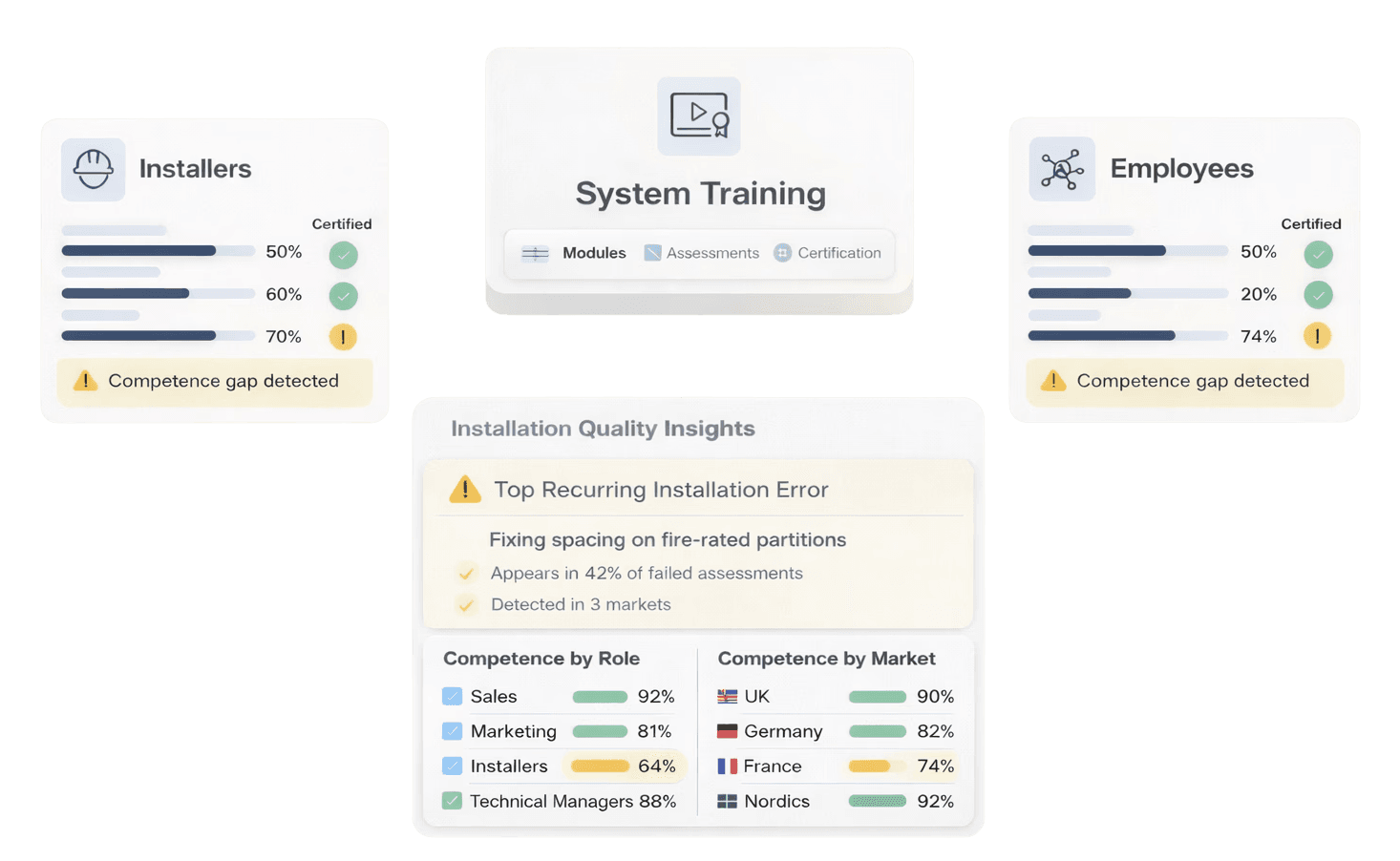 Get clear insight into where people apply your products correctly or incorrectly, by role, product, and market. Focus training where it matters and share competence evidence.